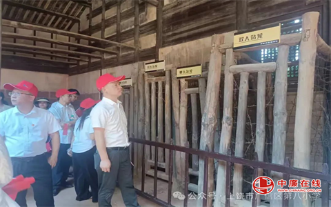 仲夏的信江河畔,苍山如铁,翠柏垂缨。6月28日,江西省上饶市广信区第八小学党员教师素装佩徽,走进上饶集中营开展“循迹红色根脉·汲取奋进力量”主题党日活动。在“党旗引领 儒雅扬帆”党建品牌指引下,开展了一场淬炼师魂的红色修行。当铁窗镣铐遇见三尺讲台,历史烽烟化作育人星火,教育者的儒雅风骨在血色丰碑前迸发出震撼时代的回响。