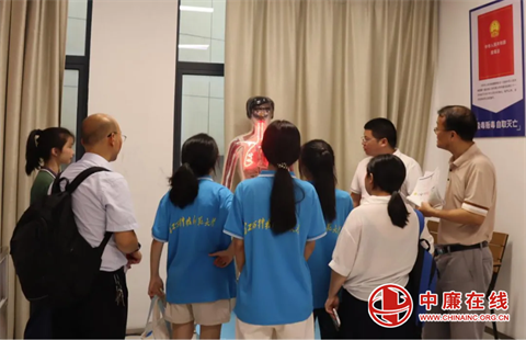跟随着小讲解员,队员们穿过一个又一个风格不同但充满教育意义的区域。“我们的基地依托互联网、虚拟现实等技术手段,搭载数字化教学设备,通过专业讲解、沉浸式VR体验和互动式参与等多种形式,将生命认知、法律知识、安全技能和心理健康教育等融入生动有趣的体验活动中,可以帮助青少年在实践中学法、懂法,提升自我保护能力和社会责任感。例如大家现在看到的便是毒品在血液中循环的模拟装置,如此客观生动的方式可以让青少年更好地了解毒品的相关危害。”