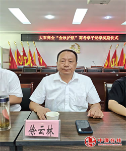 仪式首先由大石商会会长徐云林致辞。他在致辞中表达了对学子们取得优异成绩的由衷祝贺,深情回顾了商会支持教育事业的初心与坚持。他强调,教育是民族振兴、社会进步的基石,助力学子成长成才,是商会义不容辞的社会责任。他勉励学子们珍惜大学时光,奋发向上,学有所成,未来回报家乡和社会。