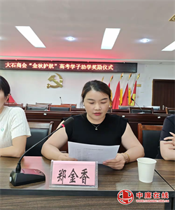 大石商会党支部书记、秘书长郑金香宣读了获得大石商会“金秋护航”助学奖励的38位优秀高考学子名单。现场响起阵阵热烈掌声,向这些品学兼优、为家乡争光的青年才俊表示最诚挚的祝贺。