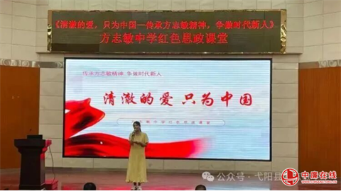 “清澈的爱,只为中国!”9月18日,这声饱含赤诚的誓言在方志敏中学报告厅回荡。在这个铭刻民族伤痛与不屈记忆的特殊日子,一场以“传承方志敏精神,争做时代新人”为主题的红色思政课在报告厅举行,校领导与八年级全体学生齐聚一堂,共同聆听红色故事、感悟精神力量,本次活动由何柳芸老师主持。