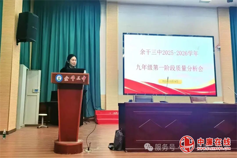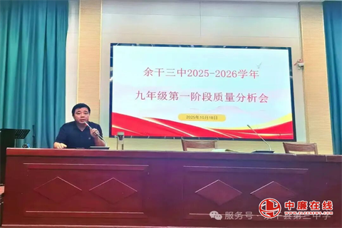 为了全面分析九年级的学生情况,进一步查找教育教学工作中的问题和不足,及时调整教学策略,推动学校教学质量稳步提升,2025年10月18日上午8:30,江西省上饶市余干县第三中学在正德楼报告厅召开了九年级第一阶段质量分析会。