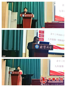 余干三中党委书记祝锋、校长吴钧意、党委委员盛晓燕、教导主任李伙金及九年级全体教师参加了会议。会议由九年级年级组副组长杨凤主持。