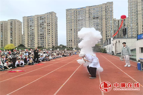 随后呈现的精彩科技表演将现场氛围推向顶峰。趣味盎然的“空气炮”表演,使学生直观领略气流运动的奥秘,解锁空气力学的基础原理;神奇的“手掌火焰”展示,在确保安全的前提下呈现奇妙的化学现象,引发学生阵阵惊叹;震撼的“液氮炸弹”实验,以生动有趣的方式展现低温科学的独特魅力。每一个环节都紧紧吸引着学生的目光,让大家在欢声笑语中沉浸式感受科技的奇妙。