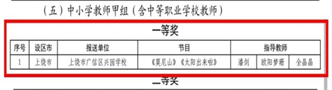 近日,江西省教育厅公布“青春唱响”第五届江西省大中小学合唱展演活动评选结果。上饶市广信区兴园学校教师合唱团凭借作品《莫尼山》与《太阳出来啦》,荣获艺术表演奖中小学教师甲组一等奖。