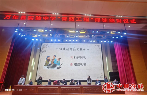 薪火相传守初心,青蓝携手向未来。为充分发挥资深骨干教师的示范引领作用,助力青年教师快速成长、站稳讲台,4月3日上午,江西省上饶市万年县实验中学在大学堂隆重举行“青蓝赓续·务实致远”2026年“青蓝工程”师徒结对仪式,一场关于教育匠心的传承,在春日校园温情启幕。