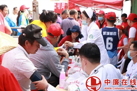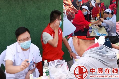活动除为群众量血压、测血糖等义诊外,还在现场发放了中药包、健康知识宣传小扇子等物品。