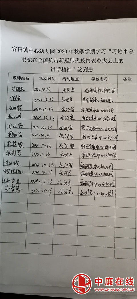 生生不息的中华民族精神,是我们这个民族坚韧顽强、不可阻挡走向复兴的重要力量。抗击新冠肺炎疫情的斗争,展现出新的时代条件下进一步锤炼着中华民族的伟大精神。习总书记在全国抗击新冠肺炎疫情表彰大会上的重要讲话中深刻指出:在这场同严重疫情的殊死较量中,中国人民和中华民族以敢于斗争、敢于胜利的大无畏气概,特此:贵州省沿河县客田镇中心幼儿园2020年10月14日组织全体教师学习“习总书记在全国抗击新冠肺炎表彰大会上的重要讲话精神”学习活动。