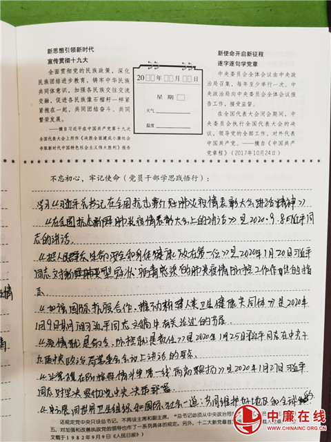 在活动中,每一位教师都在认真的听解习总书记的讲话精神,并认真的做好了笔记,通过本次的学习在每一为教师的心中对抗击疫情的医护人员、所有的逆行者都充满了无尽的敬意,有人冲在前线保护着我们,我们更应该懂得去珍惜现在的美好生活,每一位教师都深刻的领悟了习总书记的讲话精神。
