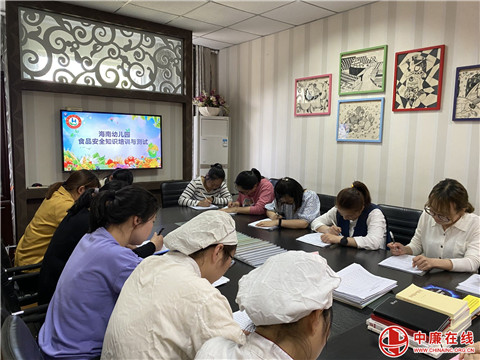 为贯彻《海安市教体系统2021年食品安全工作意见》,以习近平新时代中国特色社会主义思想为指导,遵循“四个最严”要求,深入排查整治校园食品安全问题隐患,防范化解校园食品安全风险,5月8日高新区海南幼儿园组织后勤人员和保育员开展了食品安全知识培训与测试活动。