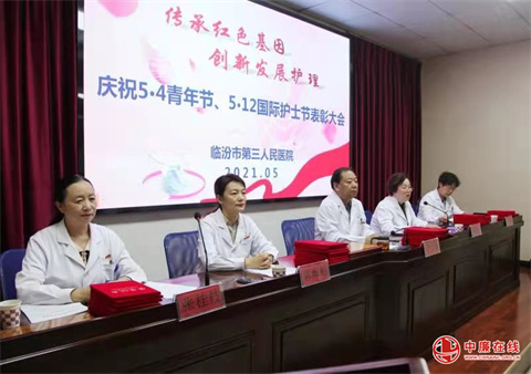 在这阳光灿烂,鲜花盛开的五月,我们欢聚一堂,隆重纪念“5·4青年节”和第110个“5·12国际护士节”。今年我国护士节的主题是“传承红色基因,创新发展护理”。为了进一步推动我院精神文明建设,促进我院护理工作的发展,弘扬南丁格尔精神,展示我院护理队伍良好的精神风貌和职业风范,激励全体护士爱岗敬业、积极进取、勇于奉献,在实现我院跨越式发展过程中发挥更大的作用。5月10日下午3时30分,山西省临汾三院庆祝“5·4青年节”“5·12国际护士节”表彰大会于传染病区七楼会议室在《没有共产党,就没有新中国》的背景音乐声中拉开序幕。