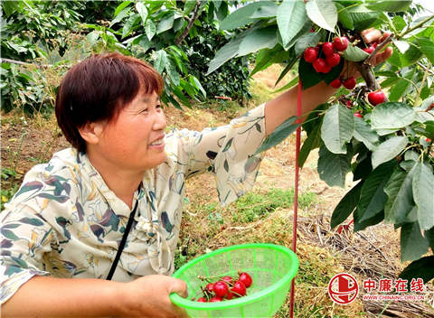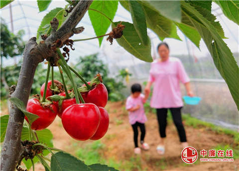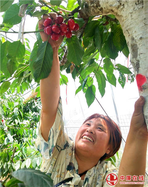 山东省郯城县马头镇小马头社区马二村村民李福云,大胆引进晚樱桃新品种俄罗斯八号大樱桃喜获成功,俄罗斯八号大樱桃果实呈心形,颜色鲜艳,不仅果大核小,皮薄肉肥,清脆可口,汁多香甜,而且深受广大消费者的喜爱。(高军 山东省郯城县马头镇党委)