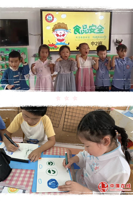 各班利用每天的活动契机,以食品卫生安全知识为主要内容,抓好常态化的食品安全教育活动。通过晨间谈话、主题班会、游戏活动等各种形式开展丰富多彩的食品安全教育,向孩子们讲解食品安全的重要性。小班幼儿通过观看食品安全宣传视频,萌芽了食品安全意识;中班幼儿通过学习食品安全儿歌,了解食品安全知识,不食用三无食品,培养了良好的卫生习惯及饮食习惯;大班幼儿通过绘制食品安全标志,掌握了食品安全的“标识图”,学会了鉴别食品安全的方法,提高了自我保护意识。