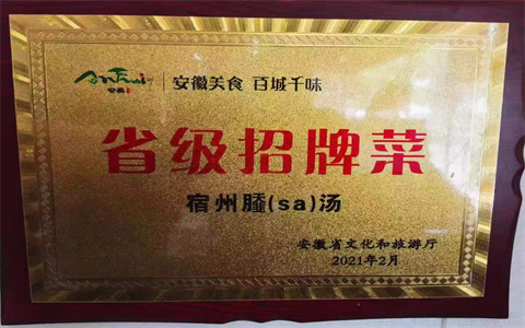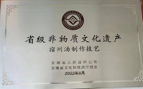 2006年,宿州“昭德轩”sà汤以及油条和糖糕,均被宿州市埇桥区命名为“非物质文化遗产”,2016年11月18日,宿州sà汤入选中国金牌旅游小吃200强。2021年12月又获得了“安徽省非物质文化遗产”称号。目前,宿州sà汤已经拥有了产品标准,有5个高级技术工。