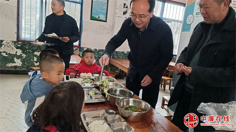 王东副县长走近一年级小朋友,向孩子们问好,并亲自给他们打菜,有的孩子喜欢吃胡萝卜丝炒肉,有的孩子喜欢吃豆腐炒肉,有的喜欢吃蛋汤,王东副县长微笑着一边询问孩子们喜欢吃什么,一边给他们打菜。