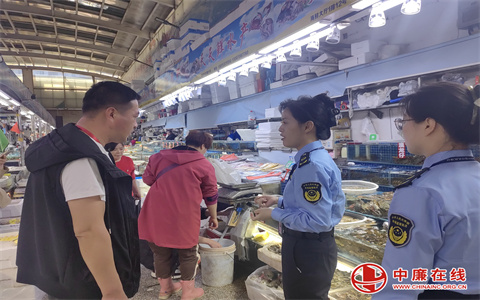 同时,执法人员根据市场近期快检记录,对市场内水产品经营户进货查验落实情况进行了抽查,要求经营户出具所销售食用农产品的产地承诺达标合格证或市场提供的快速检测报告。对未落实进货查验制度的商家,执法人员要求其现场整改。