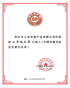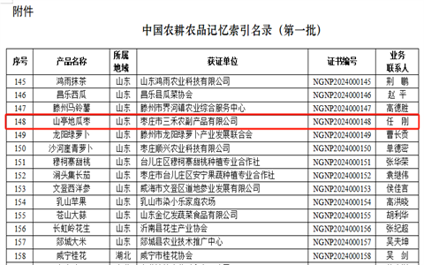 近日,中国绿色食品发展中心公布第一批《中国农耕农品记忆索引名录》,山亭区三禾农副产品有限公司的山亭地瓜枣名列其中。