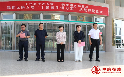 6月27日上午9点,山西省临汾市尧都区医疗集团第五届“ 千名医生进万家 ”活动启动仪式在尧都区人民医院门诊楼前举行。尧都区副区长石新亭,尧都区卫生健康局党组书记、局长梁俊艳,尧都区卫生监督所所长温九庆,尧都区人民医院领导班子、14个集团乡镇卫生院及社区负责人、14个活动小分队成员参加启动仪式。