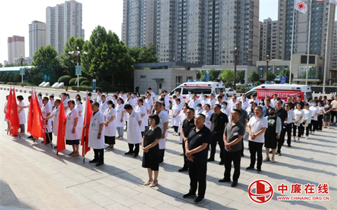最后,尧都区副区长石新亭宣布尧都区医疗集团第五届“千名医生进万家 ”活动启动,并为医疗队队长授旗。