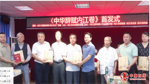 “翠屏舞凤,鹭洞鸣筝。风雅赋锵铿。摘金铺彩汇澜婓,描凤雕龙文运亨,霞蔚彤云蒸……”5月28日上午,《中华辞赋内江卷》首发仪式在四川省内江市图书馆五楼举行。现场,该书总编辑甘光地教授以富有激情的联句抒发他的喜悦之情。此次首发仪式的举办,标志着中国首部地域性辞赋——《中华辞赋内江卷》正式问世。