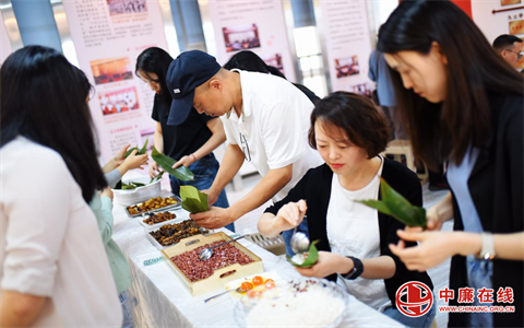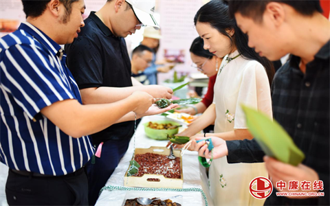 台胞王祥现场教授大家包台湾粽子,折粽叶、装糯米、放馅料、扎绳子,一双双忙碌的手穿梭在一张张翠绿的粽叶间,一道道工序有条不紊地进行着。大家一边包粽子,一边聊家常,当粽叶将食材包裹在一起时,两岸同胞的乡情亲情便紧紧相融。