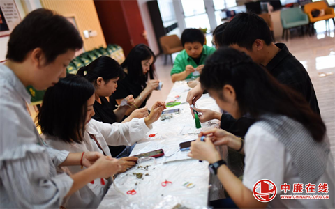 在制作香囊环节,台胞台属们穿针引线,缝制香囊袋,将精心筛选的香料填入,再串上珠子和穗子,挂上五彩绳,一个个色彩斑斓、精致小巧的香囊就鲜活呈现。大家拿起自己的作品拍照留念,纷纷表示要将亲手缝制香囊送给亲人朋友,祈福辟邪。现场弥漫着植物的天然清香,气氛其乐融融,格外沁人心脾。