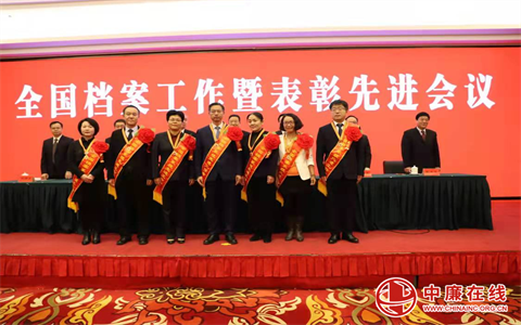胡遵远(前排中)在全国档案工作暨表彰先进会议上领奖。