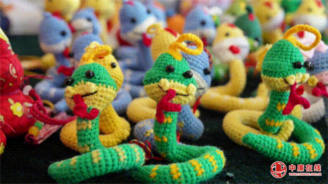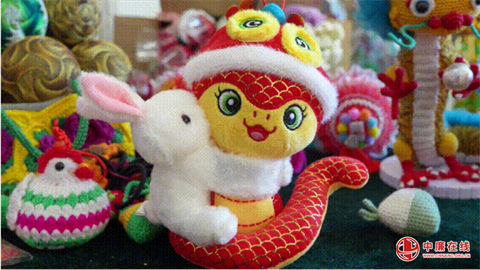 众福缘手工加工专业合作社负责人卫红宇说,今年在做香包的基础上,又增加了用扭扭棒做的财神爷灯,还有用毛线钩编做的各种蛇文化的小玩偶,以及用毛绒制作的各种雪娃娃。最有讲究的还是蛇盘兔,蛇盘兔在民间寓意着吉祥幸福、财富富足,还有团结和谐。