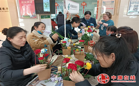 为庆祝第115个国际妇女节,辽宁省沈阳市皇姑区三台子街道松莲社区党委联合党建联席会成员单位中国邮政储蓄银行以“插非遗雅艺,悟廉政清风”为主题举办一场插花活动,此次活动旨在通过插花艺术与非遗文化的结合,弘扬廉洁文化,丰富女性同胞的精神生活,同时传递清廉理念,营造良好的社会风气。