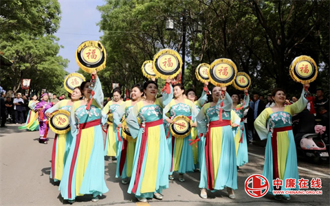 随着浑厚激昂的鼓声响起,祈福活动在崇福广场正式拉开帷幕。旗队高举旌旗开道,参与者缓步踏过精心布置的"艾叶禳灾区",每一步都承载着祛病消灾、祈愿安康的美好期许。