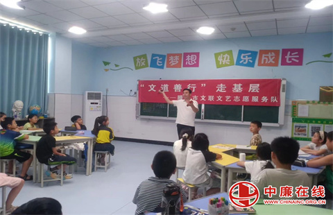 7月26日,山东省滕州市文联文艺志愿服务队曲艺小分队"文道善行"走基层活动走进东沙河街道学区"养德快乐成长营",联合山东大学"小树林"暑期实践团的十余名志愿者,为留守儿童带来了一场别开生面的非遗文化传承活动。