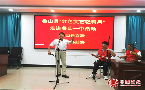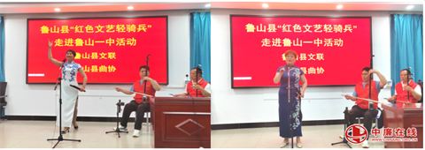 梨园春色润童心,曲韵悠长满校园。为丰富课余文化生活,弘扬中华优秀传统文化,传承红色基因,陶冶高雅情操,5月24日下午,河南省鲁山县“红色文艺轻骑兵”走进鲁山一中,开展曲艺进校园志愿演出活动,为同学们送上了富有河南鲁山本土特色的曲艺文化“大餐”。