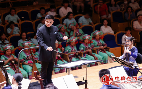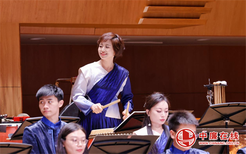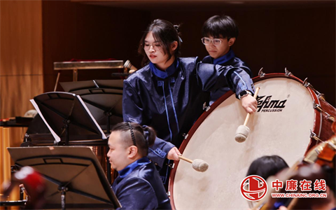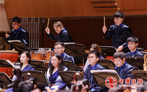 江苏省民族乐团一级指挥张伟执棒,北京青年爱乐国乐团和北京少儿打击乐团的打击乐手们领奏的《龙舞》,将音乐会的气氛带到了高潮。