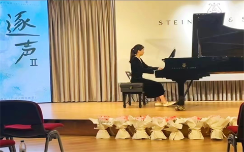 房梓彤的古筝不仅在演技巧法和弹奏风格上有传承下来许多变幻,当她缓缓划动细细的琴弦,优美的音符一个个轻快的跳出,她用古筝勾勒出来的音蒹葭动人的美感,像一条流动的溪水,把人带进聒美的心境,更是一曲汇集历史、文化及思想之优秀传统的演奏之道,深入中华文明渊源之中。