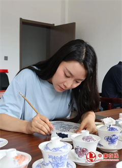 “巧手裁云织蔚蓝,神毫描画绘青莲。”在瓷器上临池舞墨,是瓷与彩的对话,是艺术与生活的碰撞。