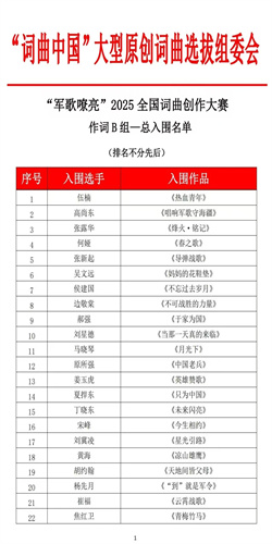 相信在“军歌嘹亮2025全国词曲创作大赛”的推动下,《临山颂》这一激昂的红色旋律将会被更多人传唱,其承载的红色精神也将得到进一步弘扬。(张磊 张琦 魏忠富)