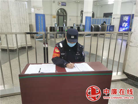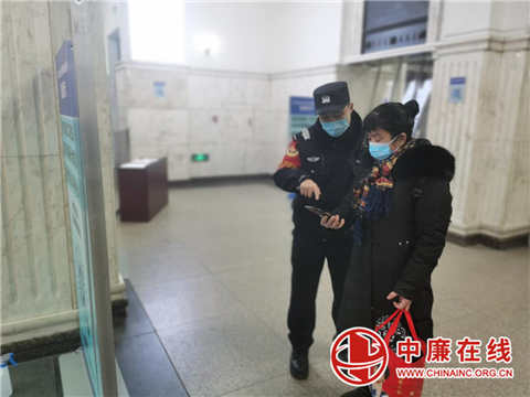 防疫战斗中,陈宝东同志将岗位前置,配合铁路防疫工作人员,帮助旅客登记信息,指导旅客扫码进站乘车,对不理解防疫动作的旅客耐心讲解。(刘峰)