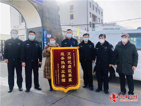 中廉在线1月27日讯:1月26日上午,山海关卫生疾控中心郭主任将一面写有“支持抗疫效率高、服务热情业务强”的锦旗,送到河北省秦皇岛市车管所所长曹连增手中,车管所班子成员和业务科室领导在锦旗前合影留念,分享喜悦成果。