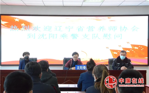 中廉在线1月28日讯:为做好春运前夕的各项准备工作,经前期联络与沟通,辽宁省营养师协会携手辽宁省东方多维职业培训学校、辽宁康福食品有限责任公司、沈阳市城区供销社、伊利沈阳分公司、九阳豆浆沈阳分公司等会员单位,共15人来到沈阳乘警支队参观。同时捐赠了各类食品和饮品等慰问物资,用于为春运期间坚守一线的列车乘警们的餐饮增加营养,并给予健康饮食指导。
