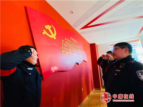 2020年2月23日16时,沈阳车站派出所执勤一队党员民警为了迎接两会安保活动,在沈阳所党员活动室开展重温入党誓词活动。