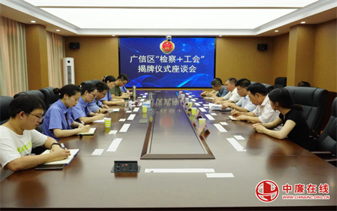 7月22日上午,江西省上饶市广信区“检察+工会”劳动权益保障服务工作室揭牌仪式在区人民检察院举行。区人大常委会党组副书记、副主任、区总工会党组书记、主席徐明福,区检察院检察长乐小敏,区总工会党组副书记、常务副主席缪巧文以及区总工会、区检察院相关负责人出席揭牌仪式。