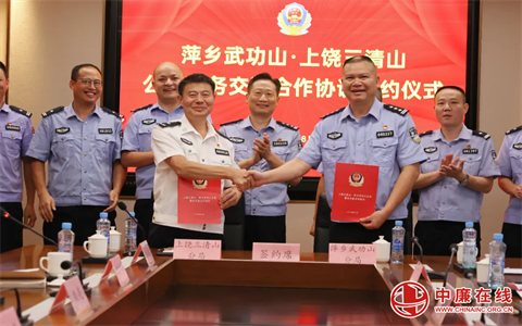 为进一步拓展警务交流合作的深度广度,助推三清山和武功山两地公安工作同迈新台阶,8月6日至7日,江西省上饶市公安局三清山分局党委书记、局长刘道胜带队到武功山分局开展警务交流活动并签订警务交流合作协议。武功山风景区党委委员、公安分局党委书记、局长彭立中和两地公安机关相关部门负责同志参加了签约仪式。