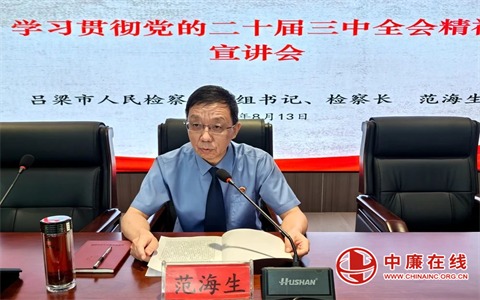 8月13日下午,山西省吕梁市人民检察院党组书记、检察长范海生在汾阳市人民检察院作党的二十届三中全会精神专题宣讲报告。汾阳市检察院全体检察人员参加。
