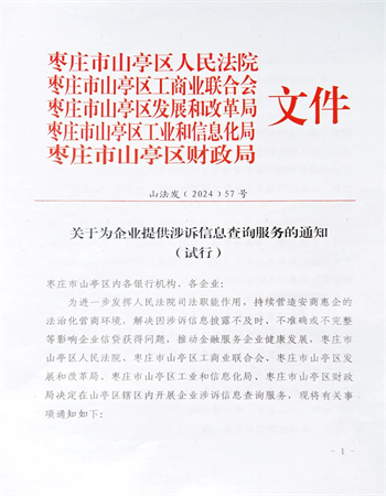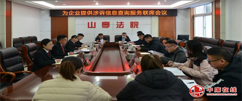 为充分发挥司法职能作用,不断深化府院联动,持续优化法治化营商环境,近日,山亭法院联合区工商联、区发改局、区工信局、区财政局召开联席会议,联动协作会商,研究制定并印发《关于为企业提供涉诉信息查询服务的通知(试行)》,帮助解决企业因涉诉陷入融资难、贷款难等问题,持续促推惠企安商。