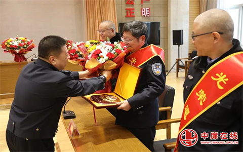 支队党委书记、支队长李瑞栋为六位退休民警颁发荣誉纪念奖章并献花。年轻民警为退休民警演唱了歌曲《少年壮志不言愁》、朗诵了诗歌《荣退颂歌》。随后,退休民警先后发言,他们对支队领导的重视和关心表示感谢,对曾经一起奋斗的战友们和坚守多年的岗位表达了不舍之情,希望支队今后发展越来越好。