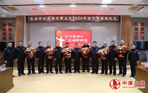 12月25日,山西省长治市公安局交警支队举行“岁月鉴初心、忠诚映韶华”2024年老干部荣退仪式。支队党委书记、支队长李瑞栋,支队班子成员,退休老干部所在单位负责人及老干科等相关科室工作人员参加。支队党委委员、政委范倩主持仪式。