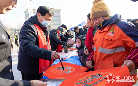 在现场为市民朋友们写福送福