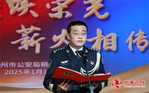为进一步深化爱警暖警举措,增强全体民警的职业荣誉感、自豪感和归属感,激发队伍担当作为、汇聚力量,引导青年民警走好从警第一步,1月10日上午,山西省朔州市朔城公安分局举行“赓续荣光 薪火相传”民警荣誉仪式,市公安局副局长张建国参加活动并讲话。局领导班子成员、退休民警代表、新入警民警代表及各部门民警参加活动。仪式在庄严的国歌声中拉开序幕。