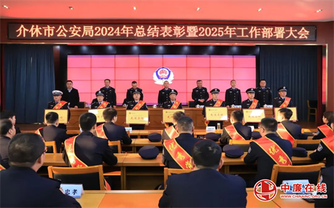 1月22日上午,山西省介休市公安局召开2024年总结表彰暨2025年工作安排部署大会,介休市副市长、公安局党委书记、局长闫峰做讲话。局领导、各科所队室一把手、受表彰的民辅警代表等参加会议,副局长徐春瑞主持会议。
