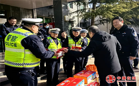 1月26日,山西省临汾市曲沃县政府副县长、公安局党委书记、局长王博君,公安局政委朱新民以及局党委班子成员走进交警大队看望慰问奋战在基层一线的民辅警,向他们致以新春佳节诚挚的问候和美好的祝福,并送上慰问品。